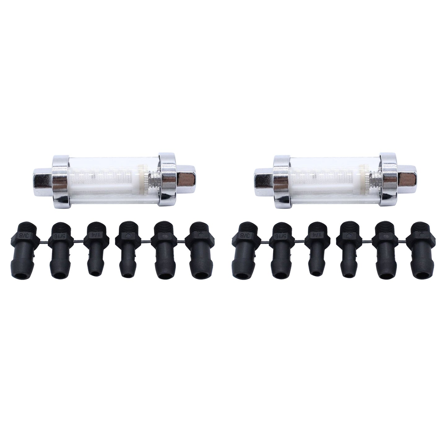 - 2x Reusable Washable Chrome Glass Inline Fuel Filter Suitable For 1/4 Inch, 5/16 Inch & 3/8 Inch Fuel Lines